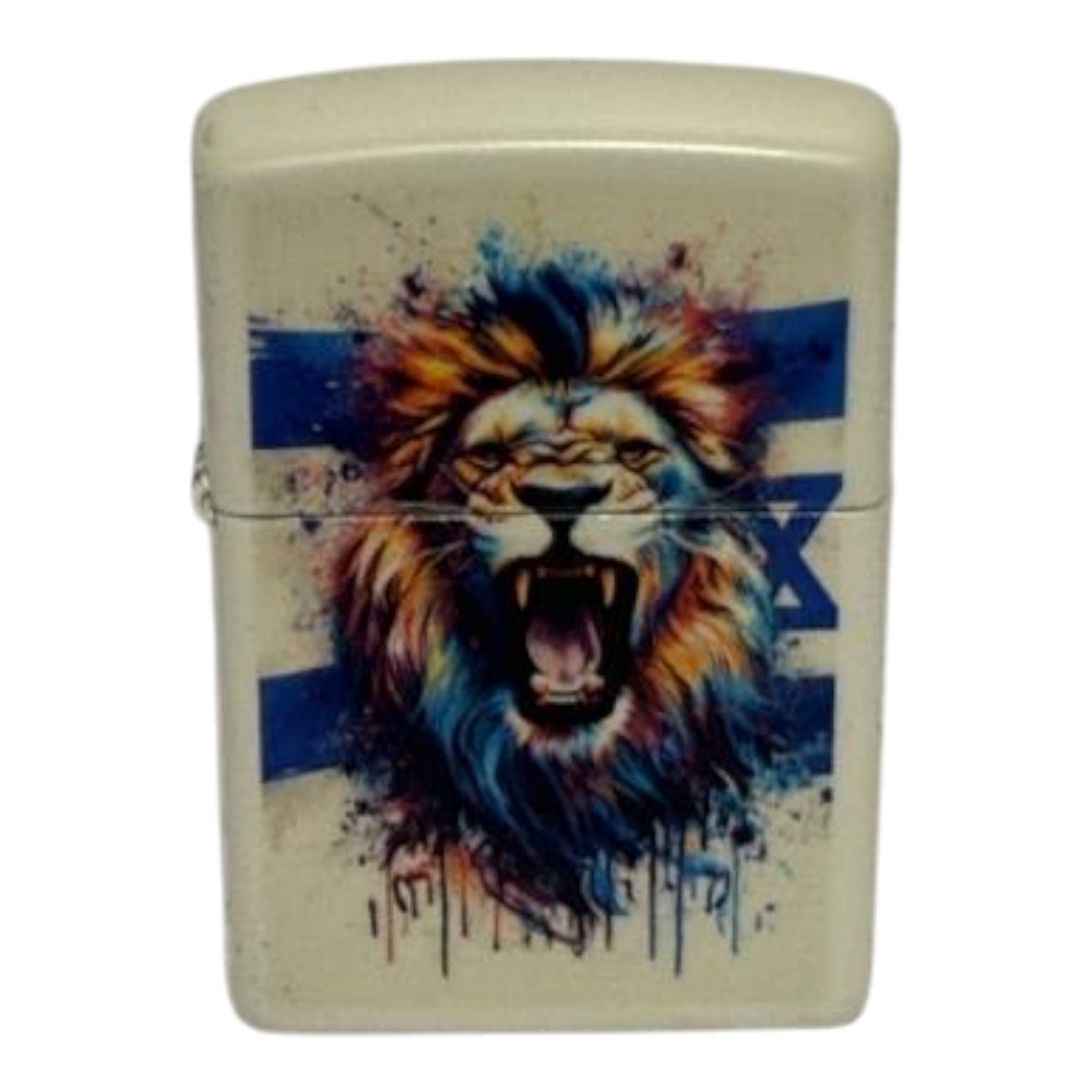 מצית זיפו שאגה ישראלית זוהר בחושך Zippo במהדורה מיוחדת לשוק הישראלי עם עיצוב עוצמתי של אריה שואג, רקע בהשראת דגל ישראל ואפקט זוהר בחושך בגוונים ירקרקים. גוף מתכתי איכותי עם הדפס עמיד. מנגנון הצתה קלאסי עם צליל Zippo האייקוני ועמידות גבוהה לרוח. מצית רב־פעמי הניתן למילוי. מיוצר בארה״ב ומיועד לשימוש יומיומי ובתנאי חוץ.