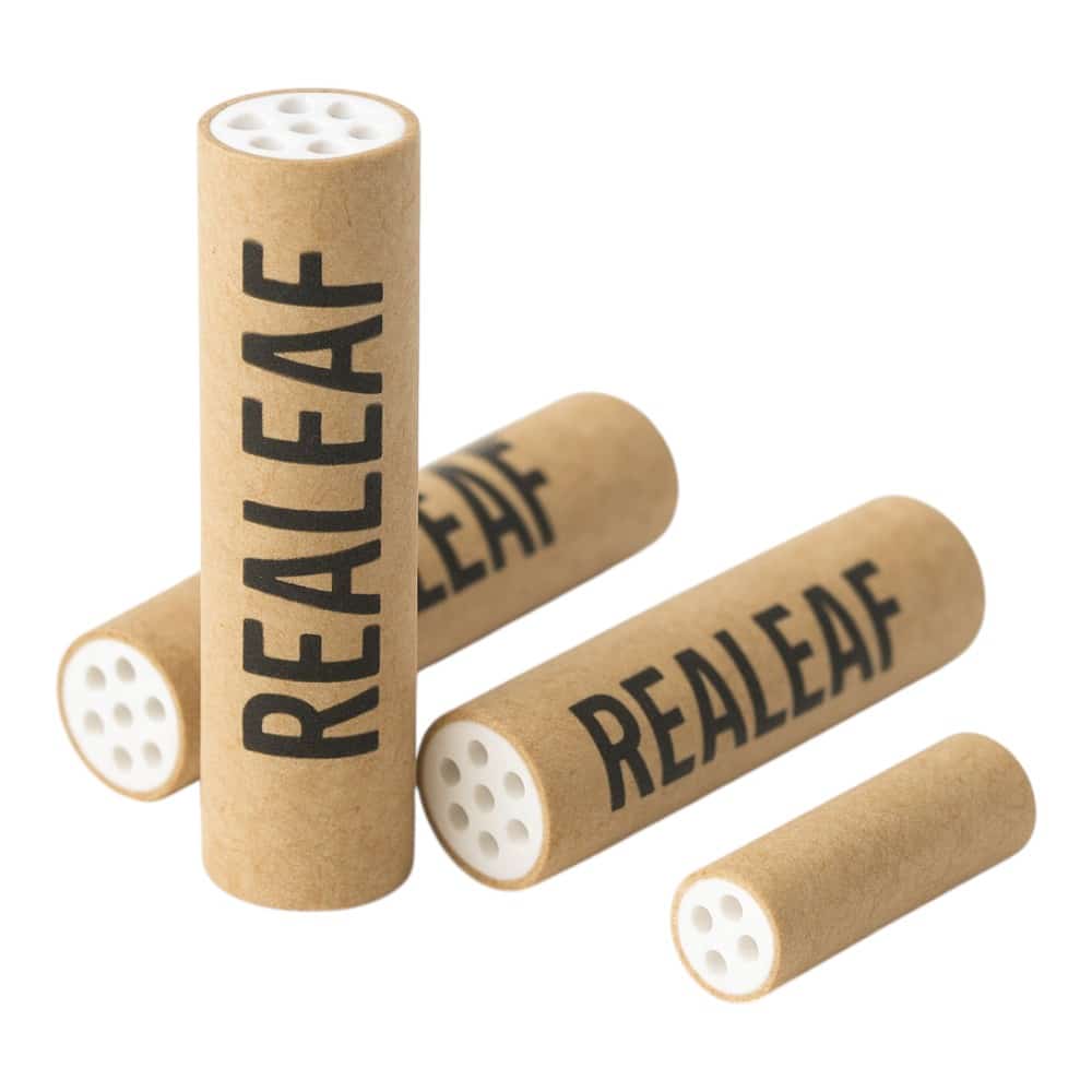 פילטר פחם קוקוס ריליף Realleaf, מארז של 50 יחידות 7 מ"מ הפילטר עשוי מפחם פעיל טבעי, התורם להפחתת המזהמים בזמן שריפת הצמח או הטבק, ניתן לשימוש חוזר!